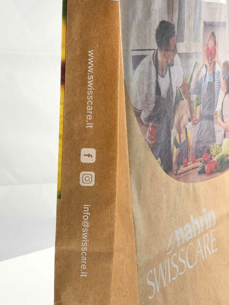 Da una parte si può enfatizzare il logo e il payoff istituzionale, dall’altra valorizzare un visual prodotto, un claim di sostenibilità o un benefit chiave. In questo modo, ogni passo del cliente diventa un’occasione per mostrare una faccia diversa del brand, aumentando la memorabilità e la brand awareness senza aumentare il formato o la complessità strutturale della bag.